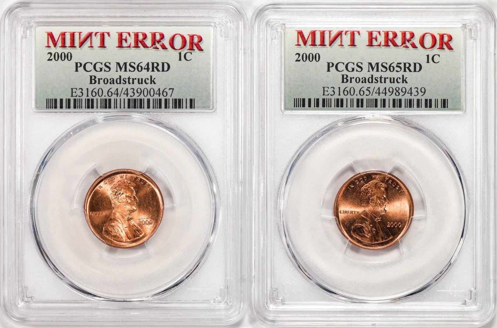 Lot of 2000 Lincoln Cent Memorial Coins Mint Error Broadstruck PCGS MS64/65RD