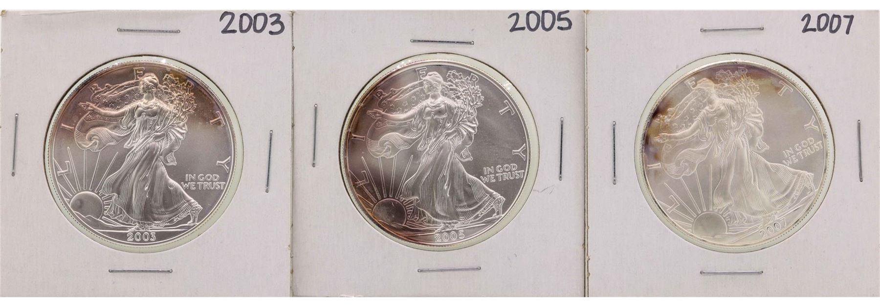 Lot of 2003, 2005 & 2007 $1 American Silver Eagle Coins