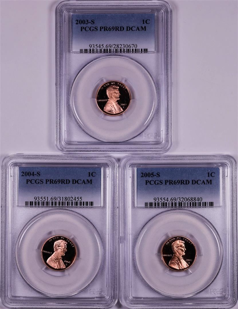 Lot of 2003-S to 2005-S Proof Lincoln Memorial Cent Coins PCGS PR69RD DCAM