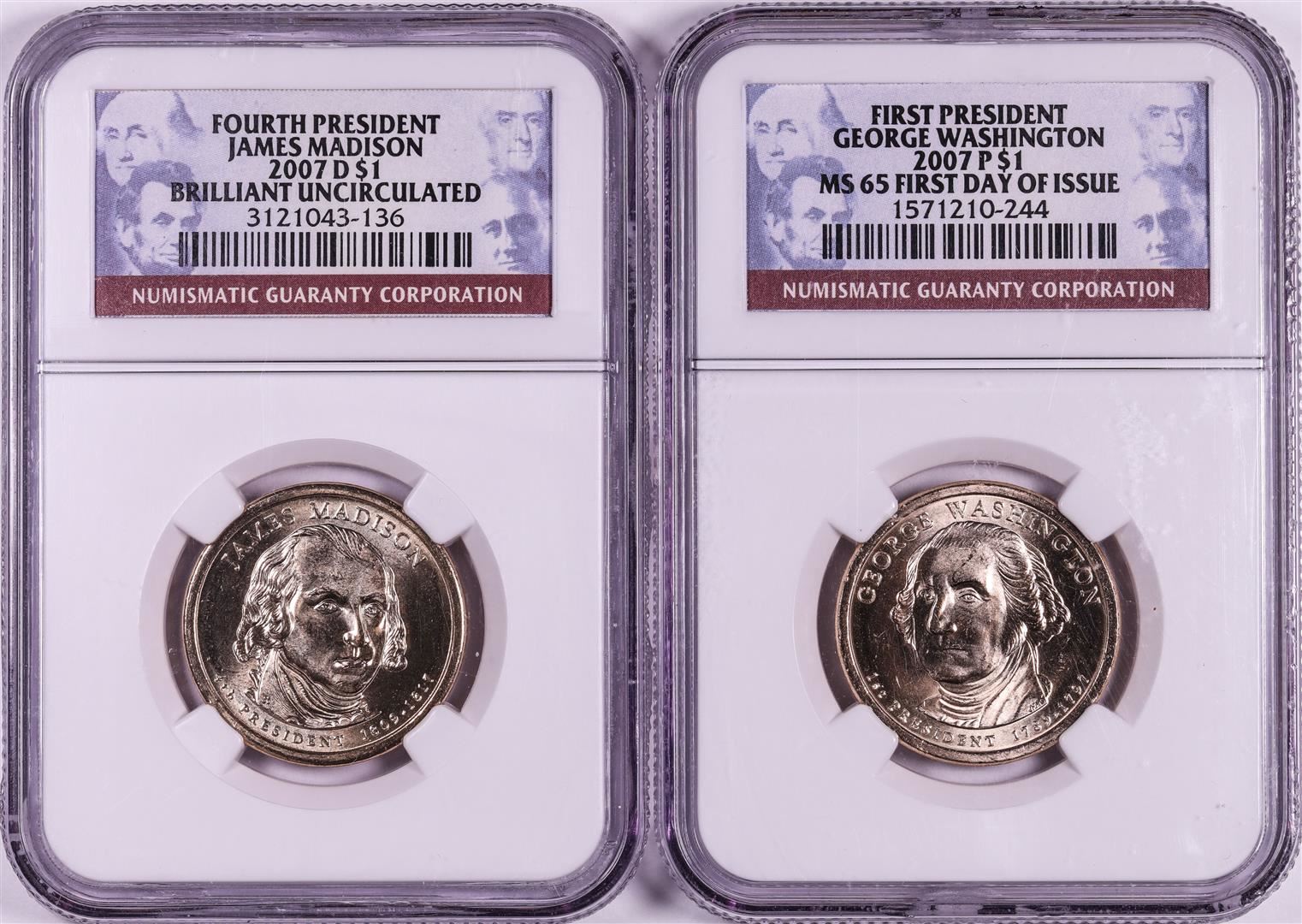 Lot of 2007-D and 2007-P $1 Presidential Dollar Coins NGC Brilliant Uncirculated