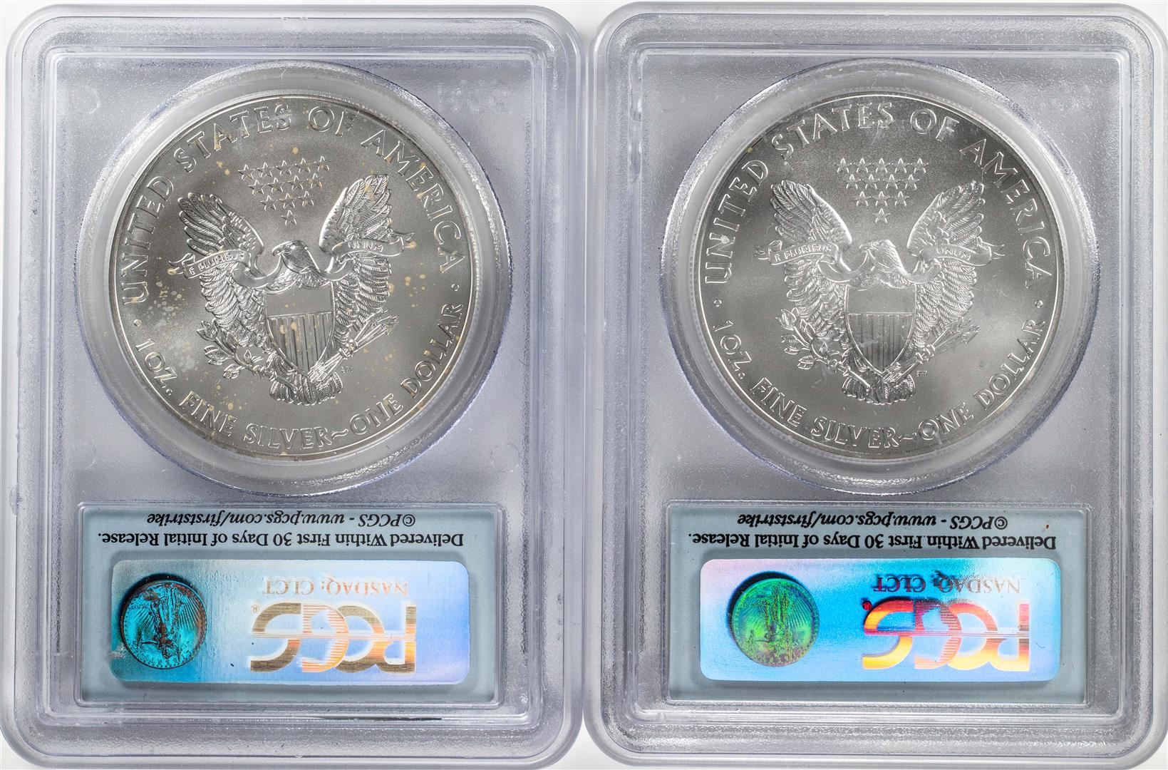 One Lot of 2008-2009 $1 American Silver Eagle Coins PCGS MS70 First Strike. PCGS Graded.