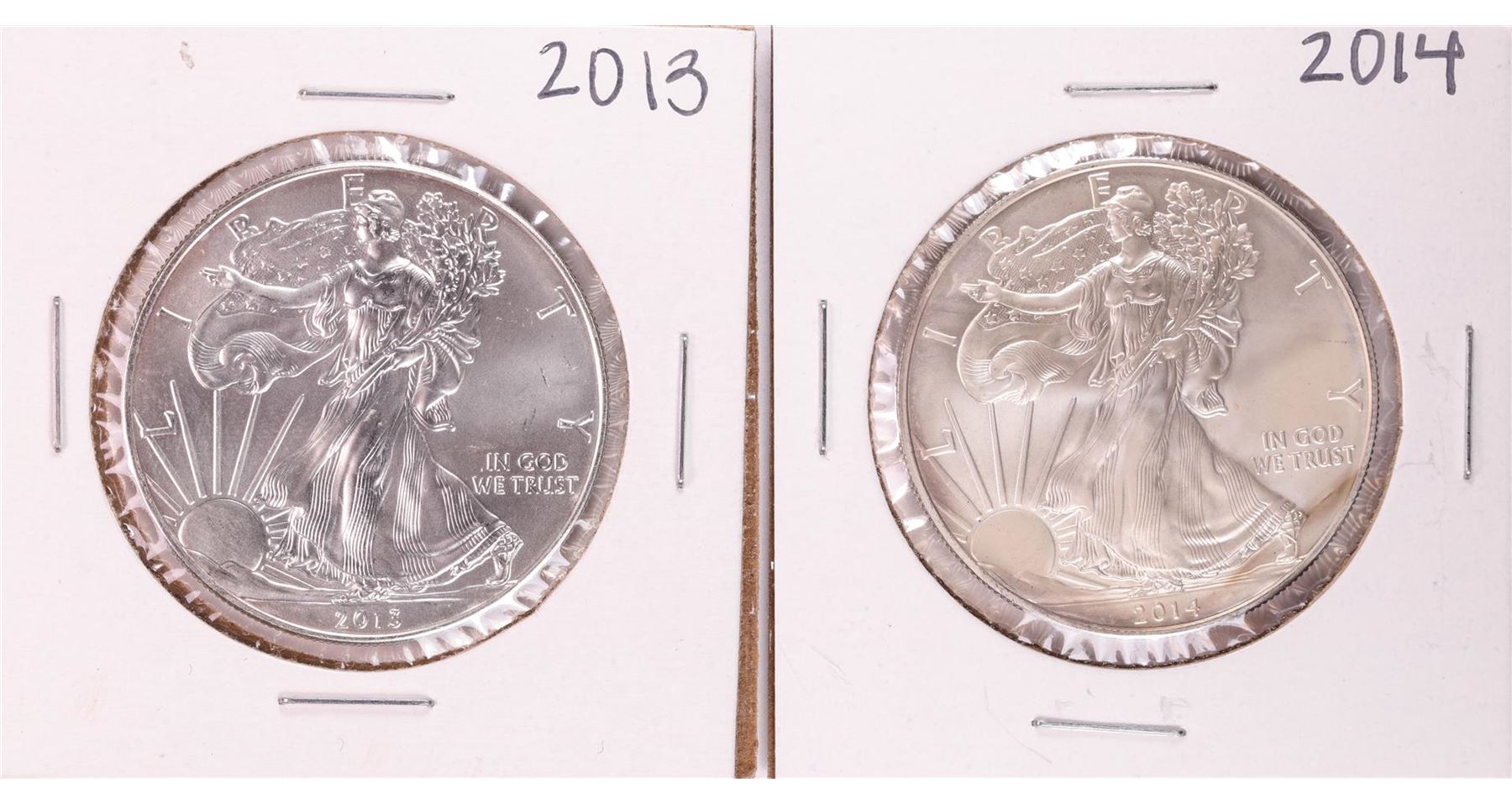 One Lot of 2013-2014 $1 American Silver Eagle Coins.