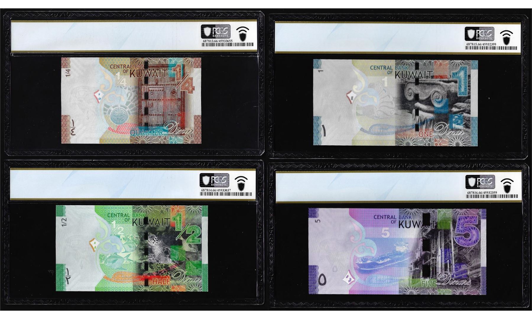 Lot of 2014 Kuwait 1/4, 1/2, 1 & 5 Dinar Notes PCGS Gem Uncirculated 66PPQ