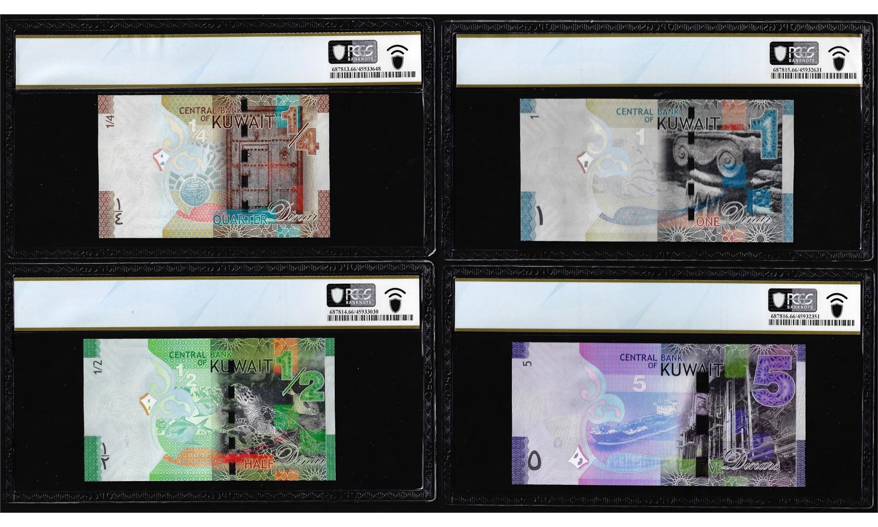 Lot of 2014 Kuwait 1/4, 1/2, 1 & 5 Dinar Notes PCGS Gem Uncirculated 66PPQ