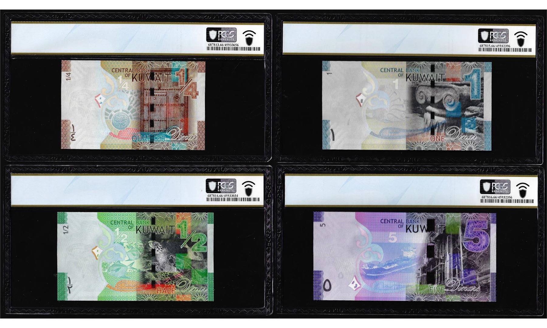 Lot of 2014 Kuwait 1/4, 1/2, 1 & 5 Dinar Notes PCGS Gem Uncirculated 66PPQ