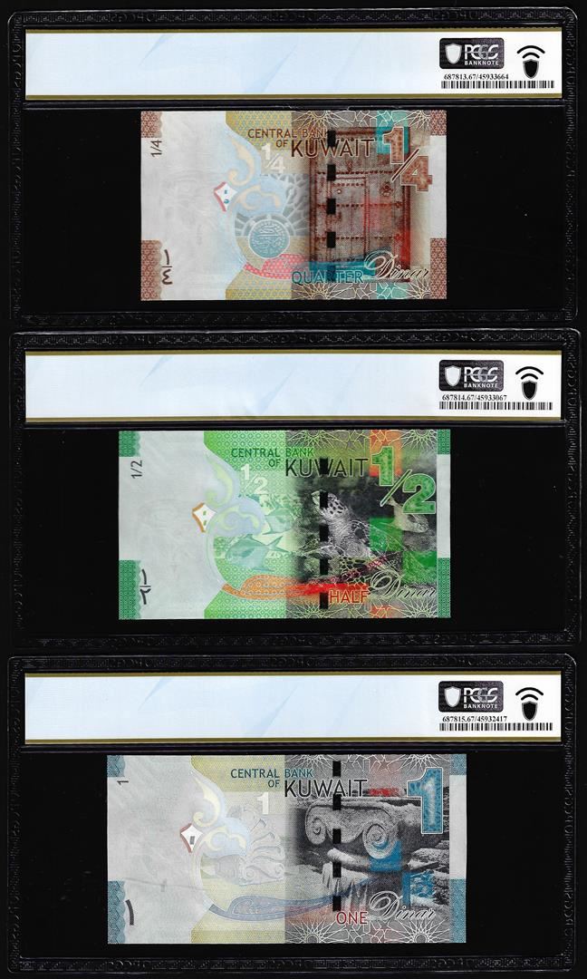 Lot of 2014 Kuwait 1/4, 1/2 & 1 Dinar Notes PCGS Superb Gem Uncirculated 67PPQ