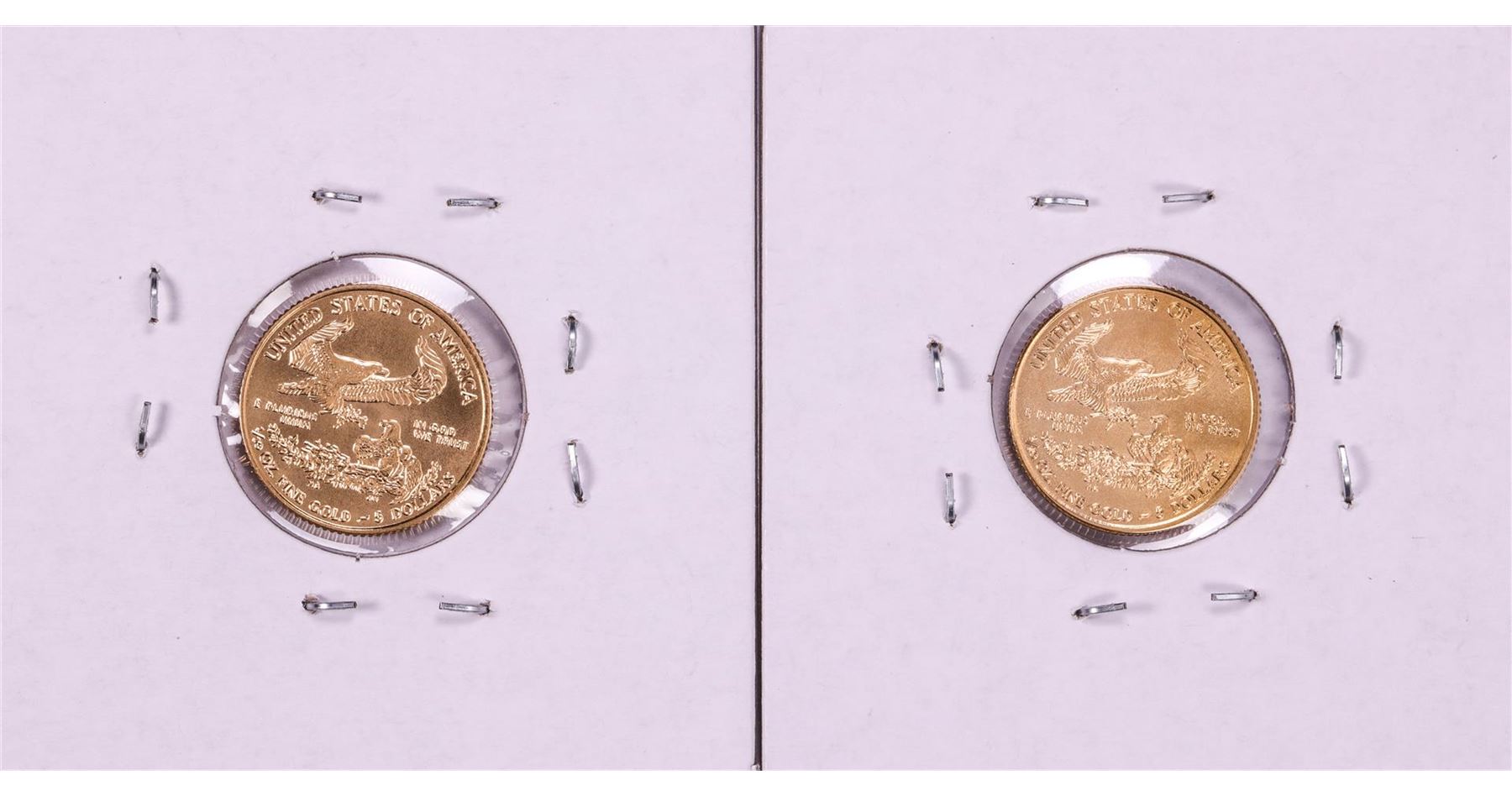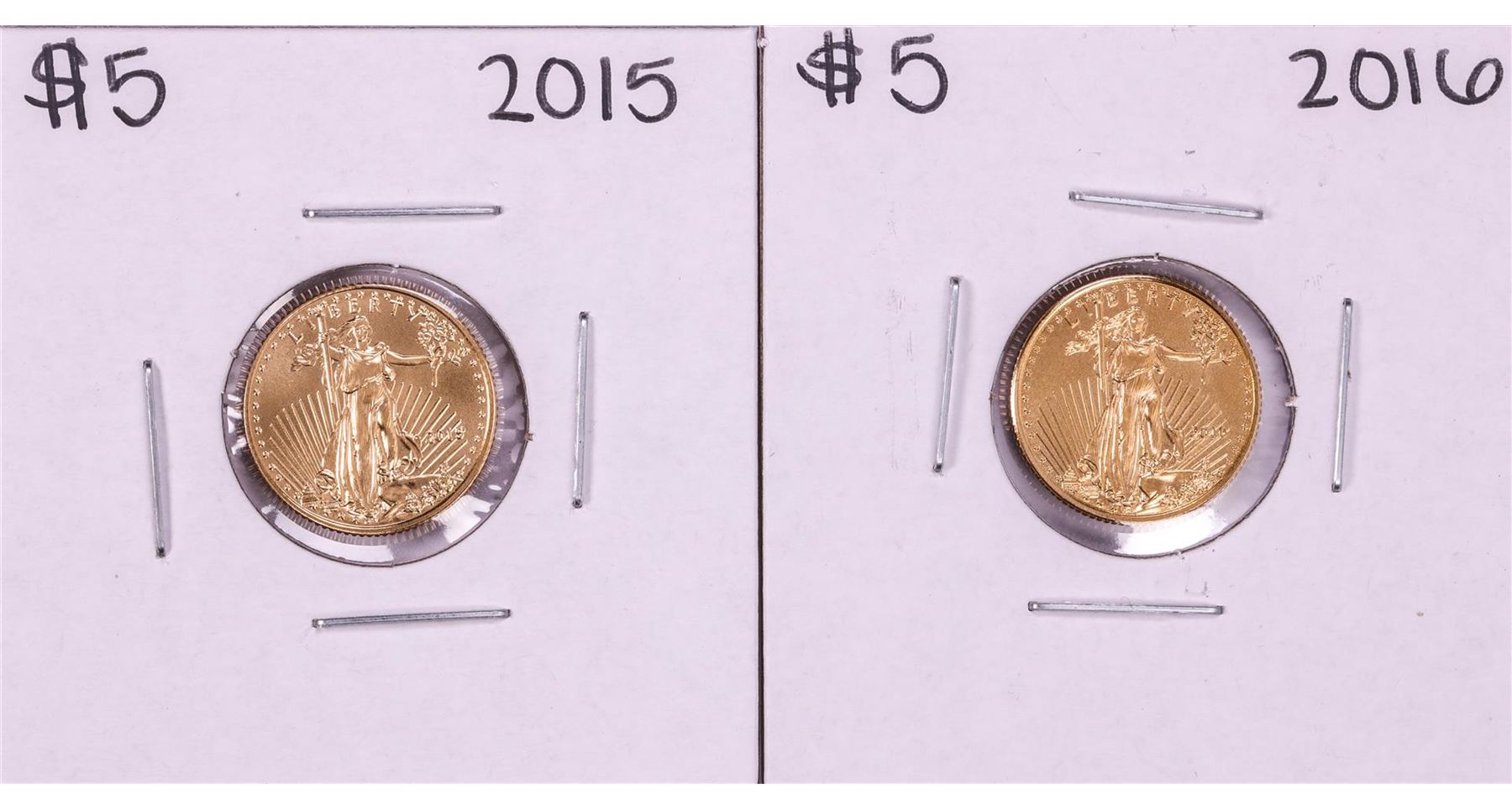 One Lot of 2015-2016 $5 American Gold Eagle Coins.