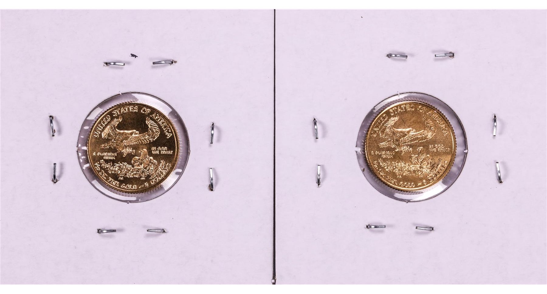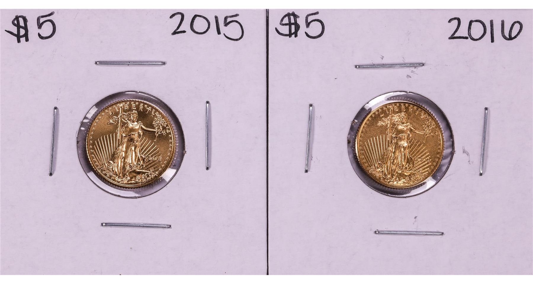 One Lot of 2015-2016 $5 American Gold Eagle Coins.
