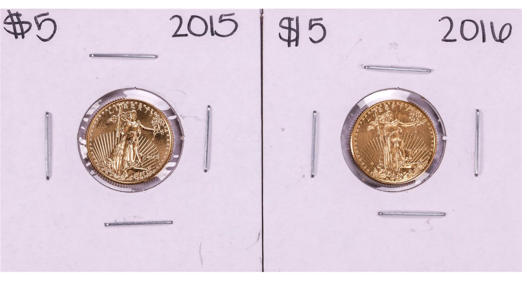 One Lot of 2015-2016 $5 American Gold Eagle Coins.