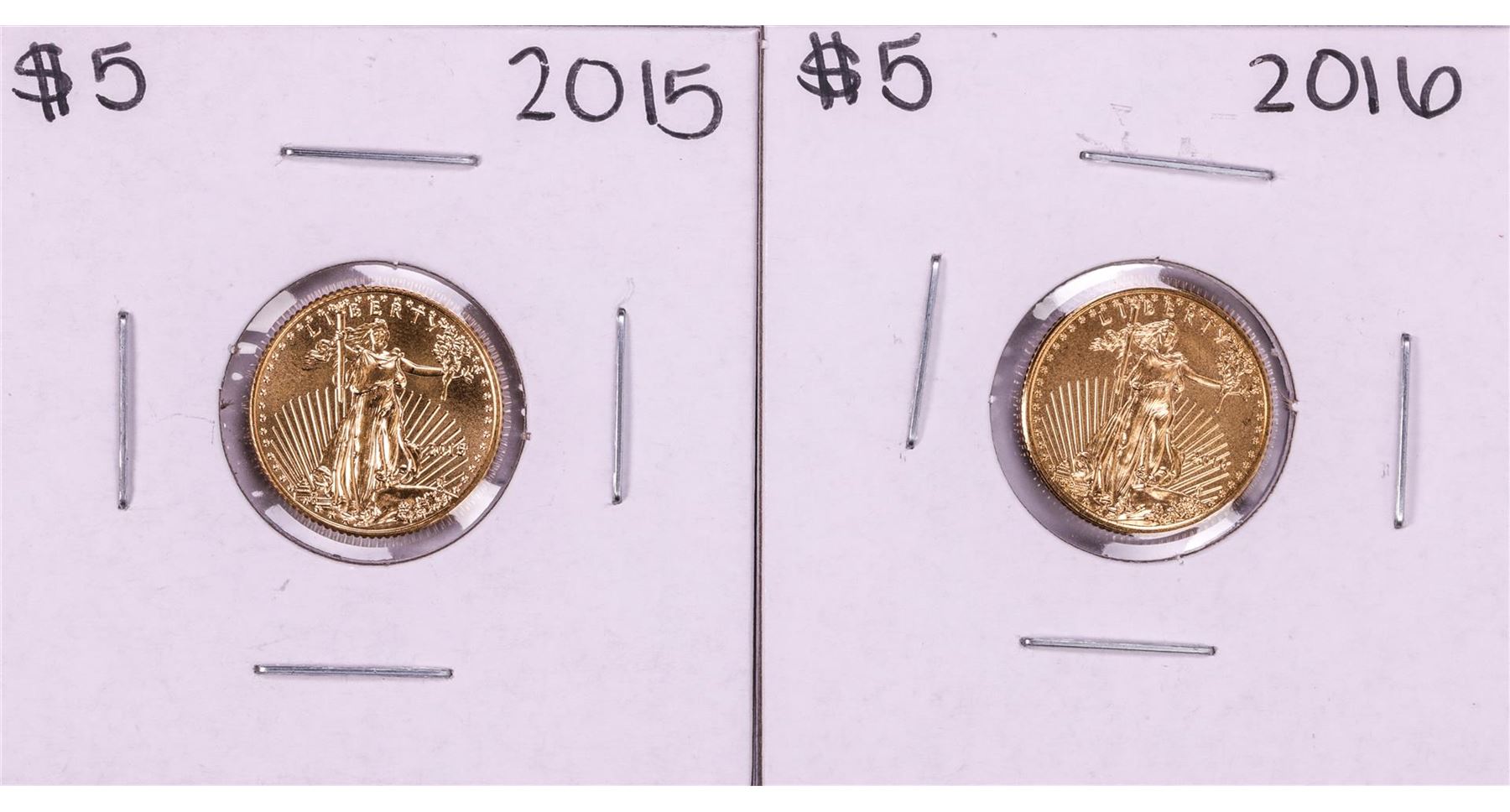 One Lot of 2015-2016 $5 American Gold Eagle Coins.