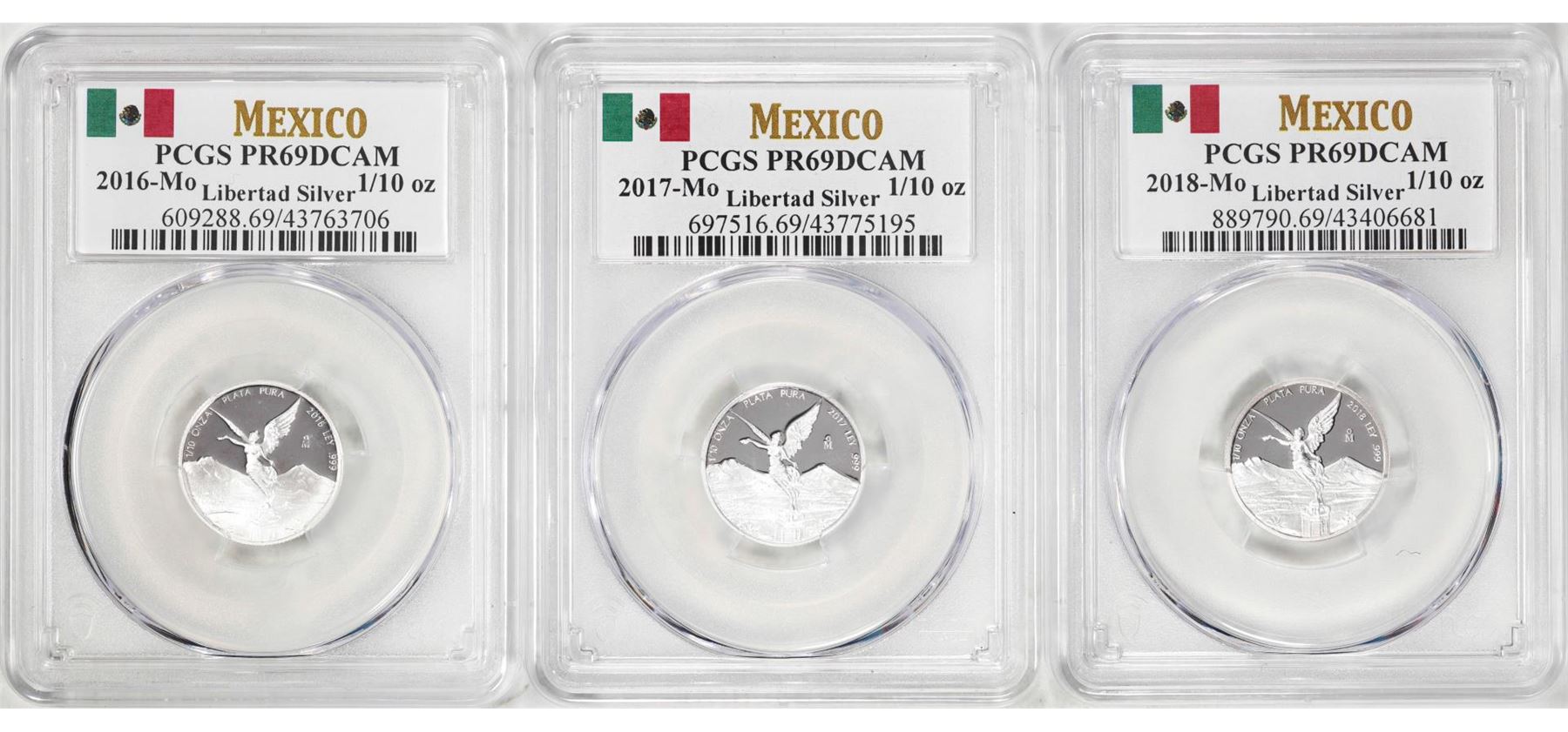 One Lot of 2016-2018-Mo Mexico Proof 1/10 oz Silver Libertad Coins PCGS PR69DCAM. PCGS Graded.