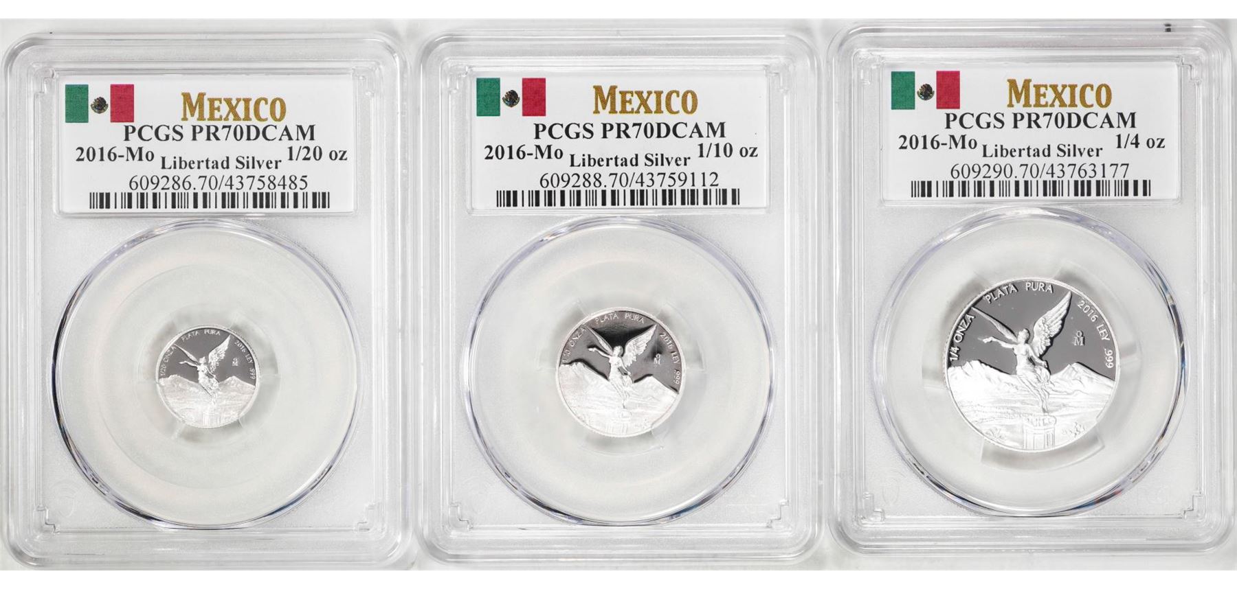Lot of 2016-Mo Mexico Proof 1/20, 1/10 and 1/4 oz Silver Libertad Coins PCGS PR69DCAM