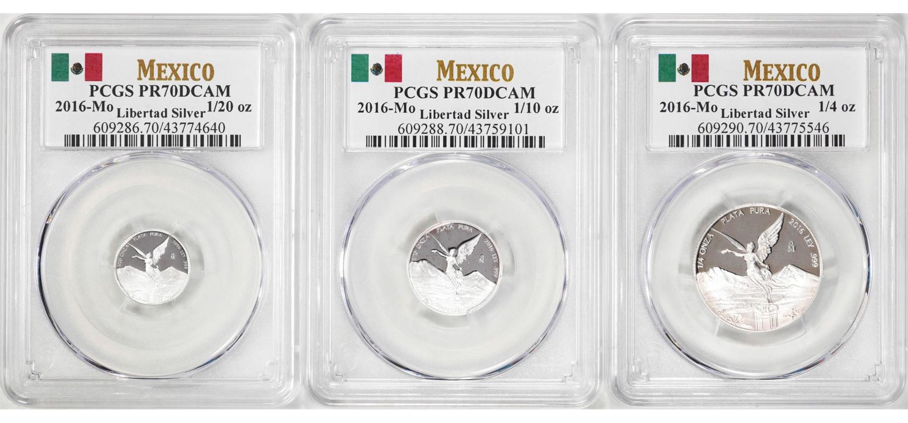 Lot of 2016-Mo Mexico Proof 1/20, 1/10 and 1/4 oz Silver Libertad Coins PCGS PR69DCAM