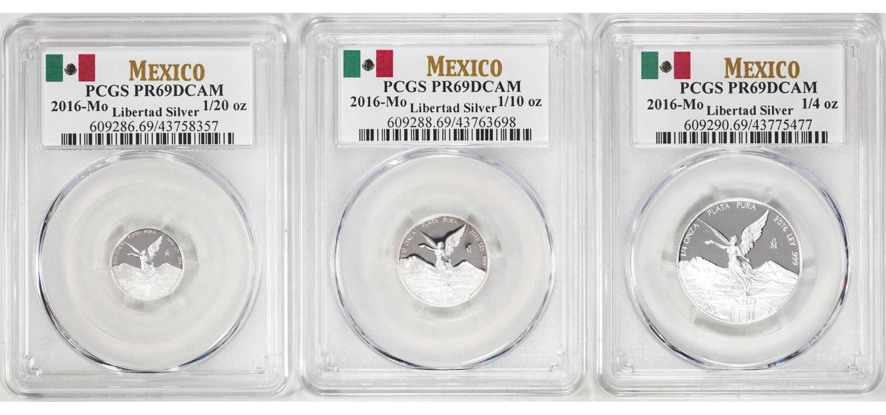 Lot of 2016-Mo Mexico Proof 1/20, 1/10 and 1/4 oz Silver Libertad Coins PCGS PR69DCAM