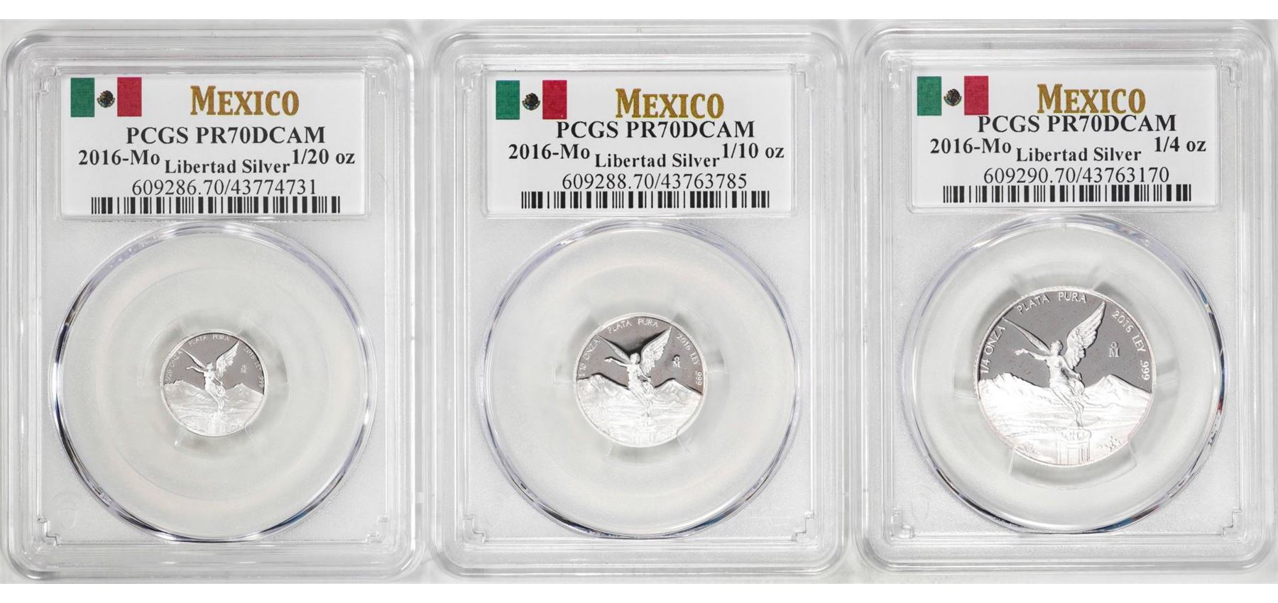 Lot of 2016-Mo Mexico Proof 1/20, 1/10 and 1/4 oz Silver Libertad Coins PCGS PR69DCAM