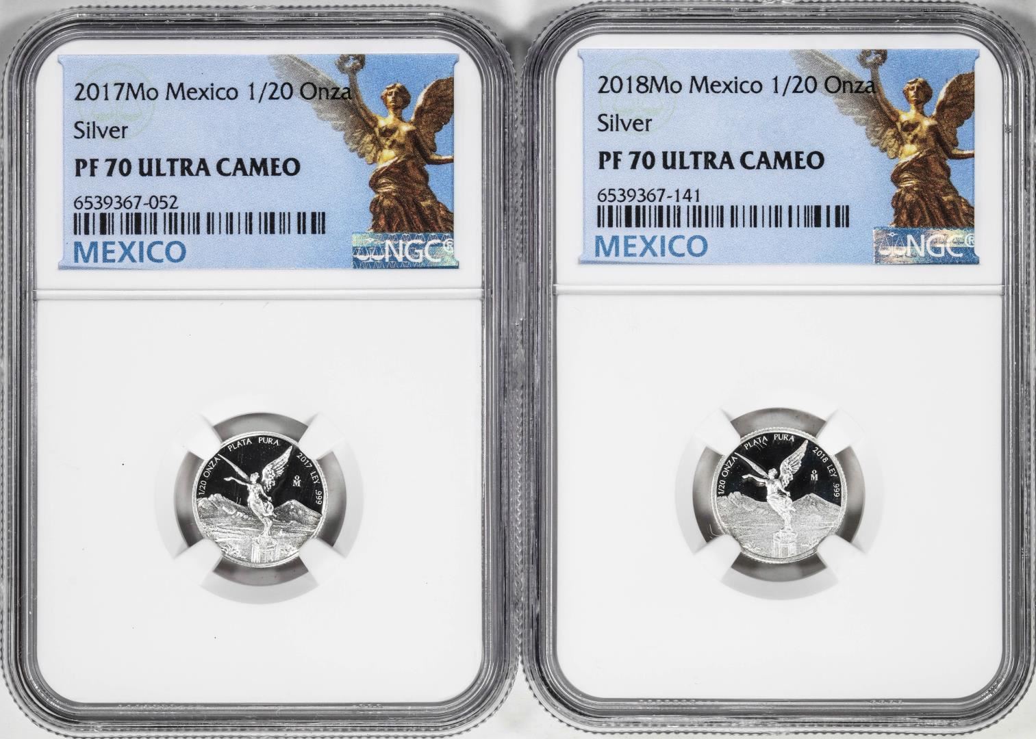 One Lot of 2017-2018-Mo Mexico Proof 1/20 oz Silver Libertad Coins NGC PF70 Ultra Cameo. NGC Certified.