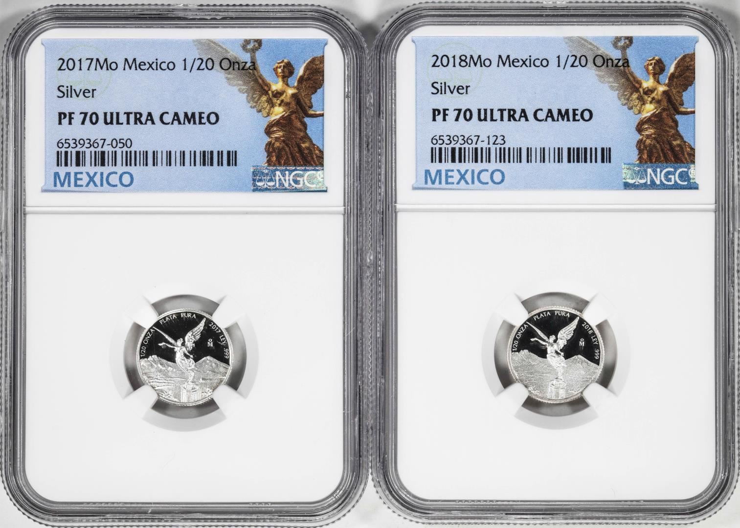 One Lot of 2017-2018-Mo Mexico Proof 1/20 oz Silver Libertad Coins NGC PF70 Ultra Cameo. NGC Certified.