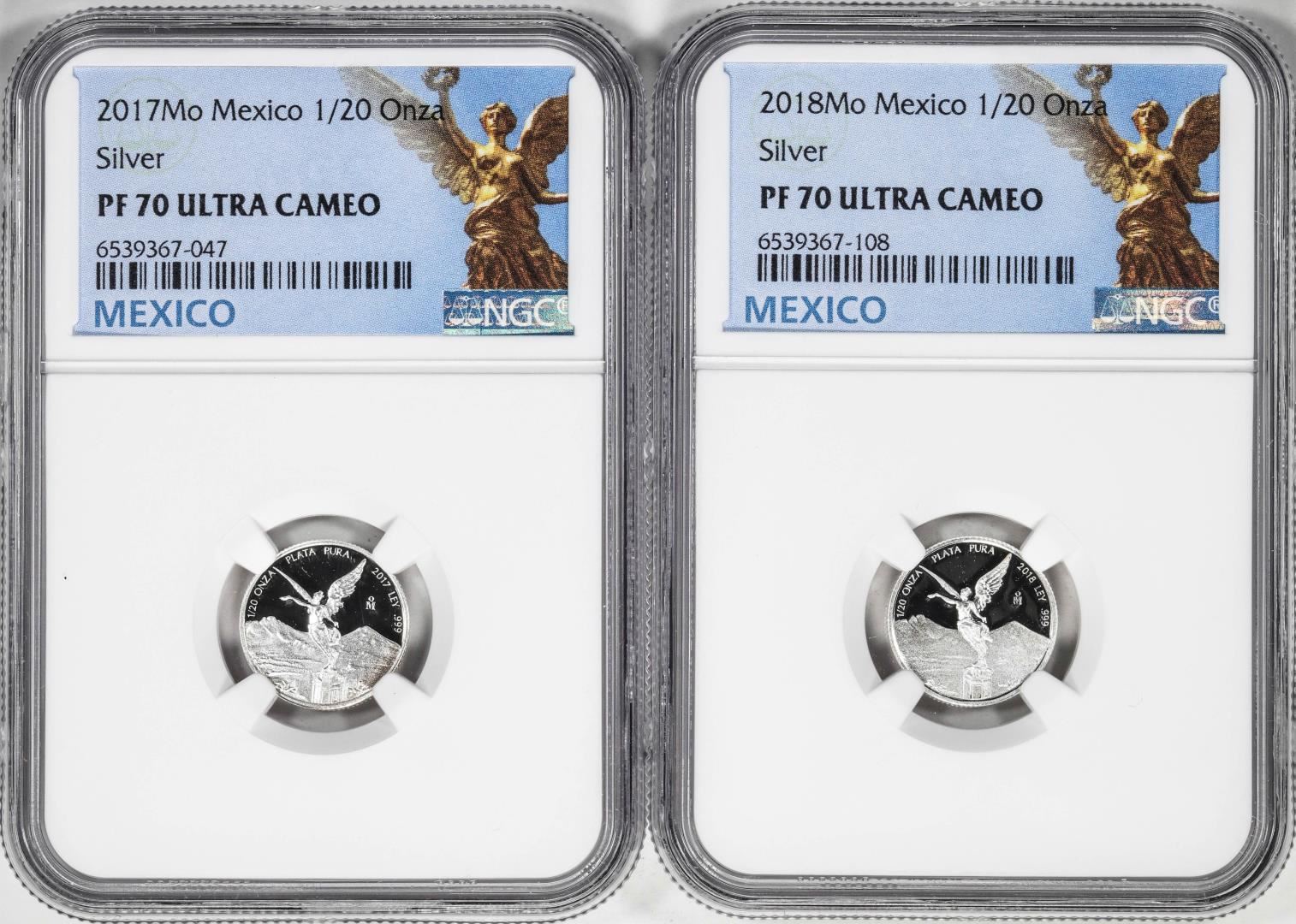 One Lot of 2017-2018-Mo Mexico Proof 1/20 oz Silver Libertad Coins NGC PF70 Ultra Cameo. NGC Certified.