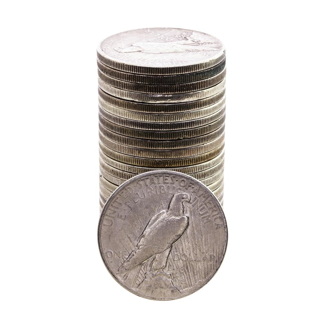 One Lot of (25) $1 Peace Silver Dollar Coins.