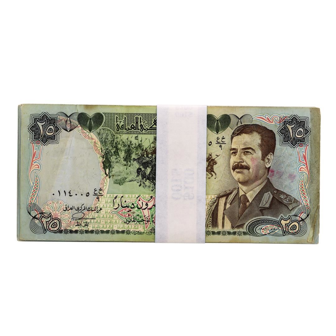 One Lot of (25) Iraqi 25 Dinars Saddam Hussein Notes.