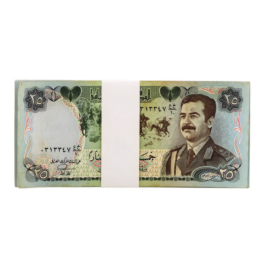 One Lot of (25) Iraqi 25 Dinars Saddam Hussein Notes.