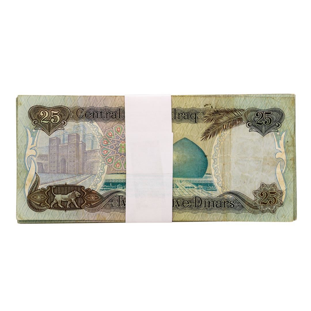 One Lot of (25) Iraqi 25 Dinars Saddam Hussein Notes.