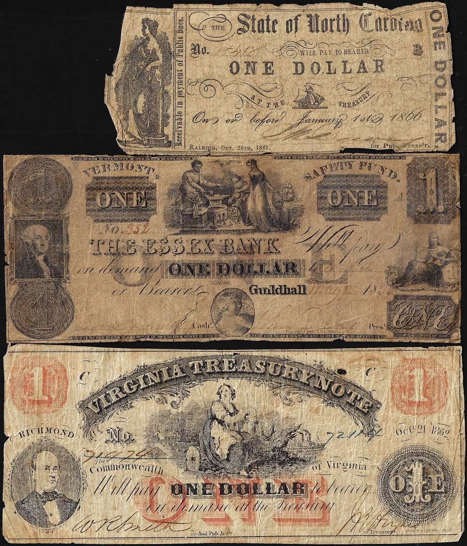 One Lot of (3) 1800's Miscellaneous Obsolete Currency Notes.