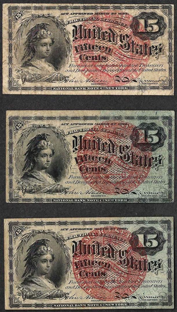 Lot of (3) 1863 Fourth Issue 15 Cent Fractional Currency Notes
