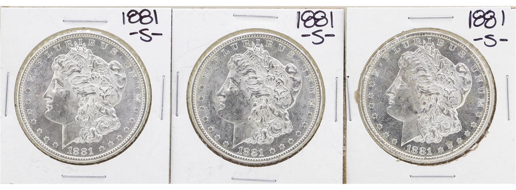 One Lot of (3) 1881-S $1 Morgan Silver Dollar Coins.