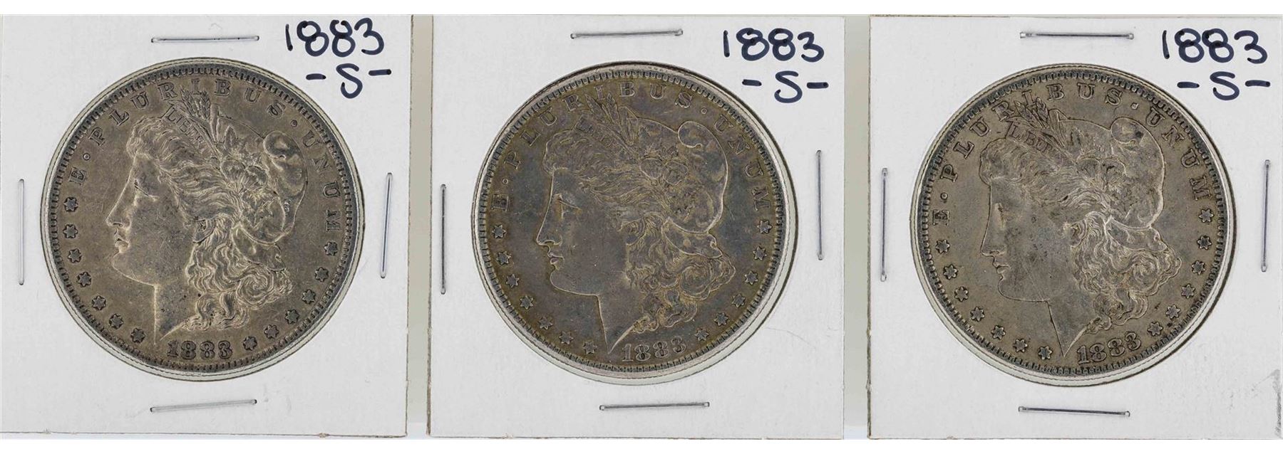 One Lot of (3) 1883-S $1 Morgan Silver Dollar Coins.