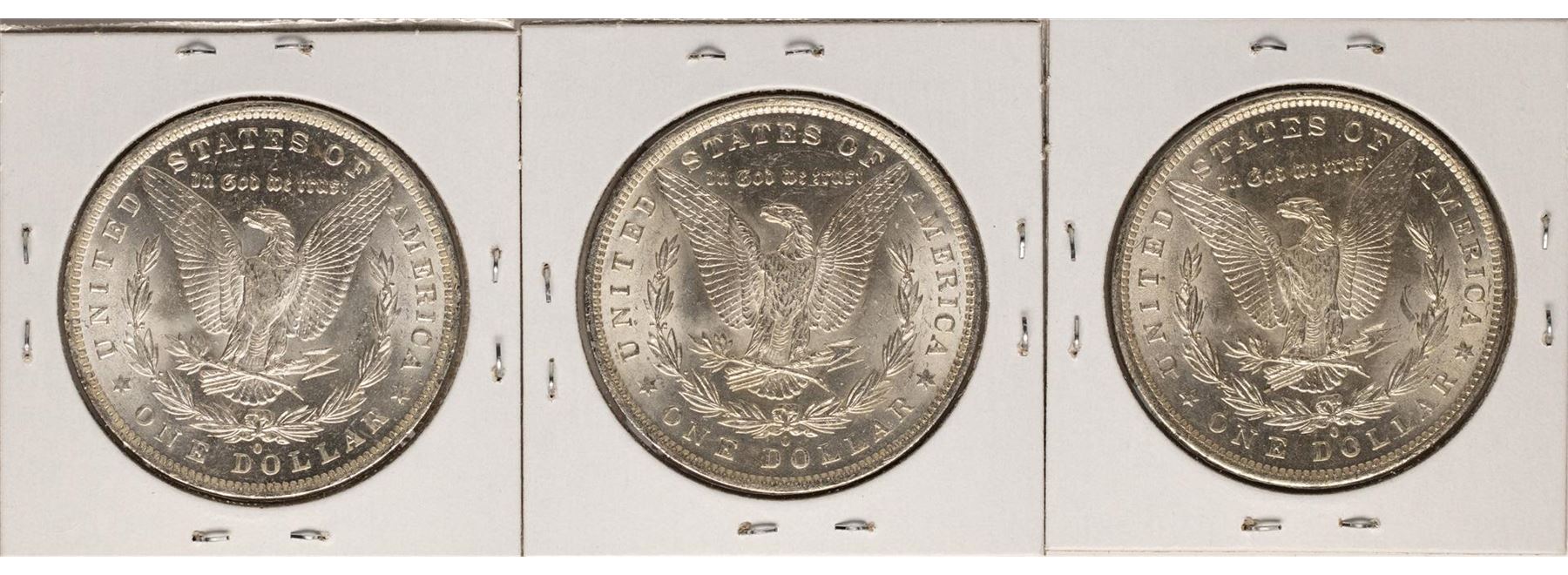 One Lot of (3) 1884-O $1 Morgan Silver Dollar Coins.