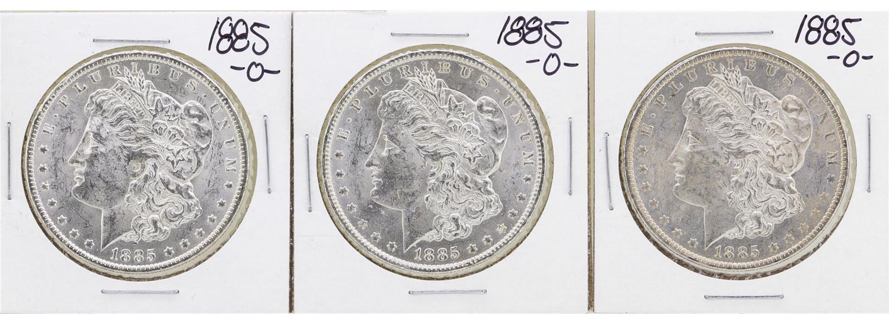 One Lot of (3) 1885-O $1 Morgan Silver Dollar Coins.