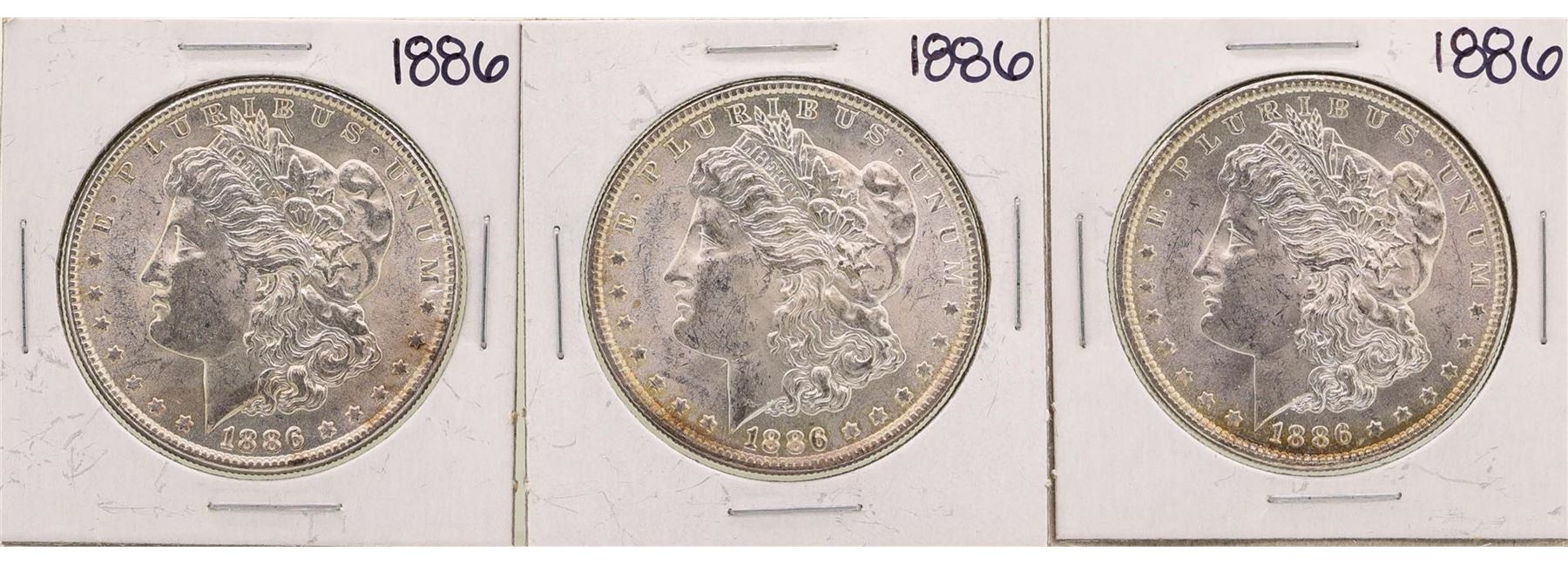 One Lot of (3) 1886 $1 Morgan Silver Dollar Coins.