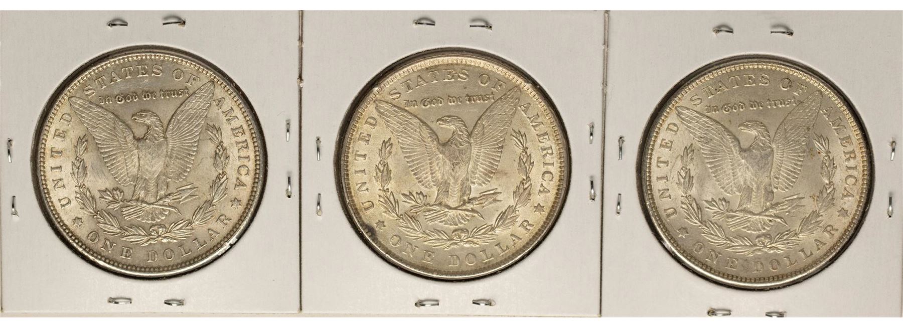 One Lot of (3) 1889 $1 Morgan Silver Dollar Coins.