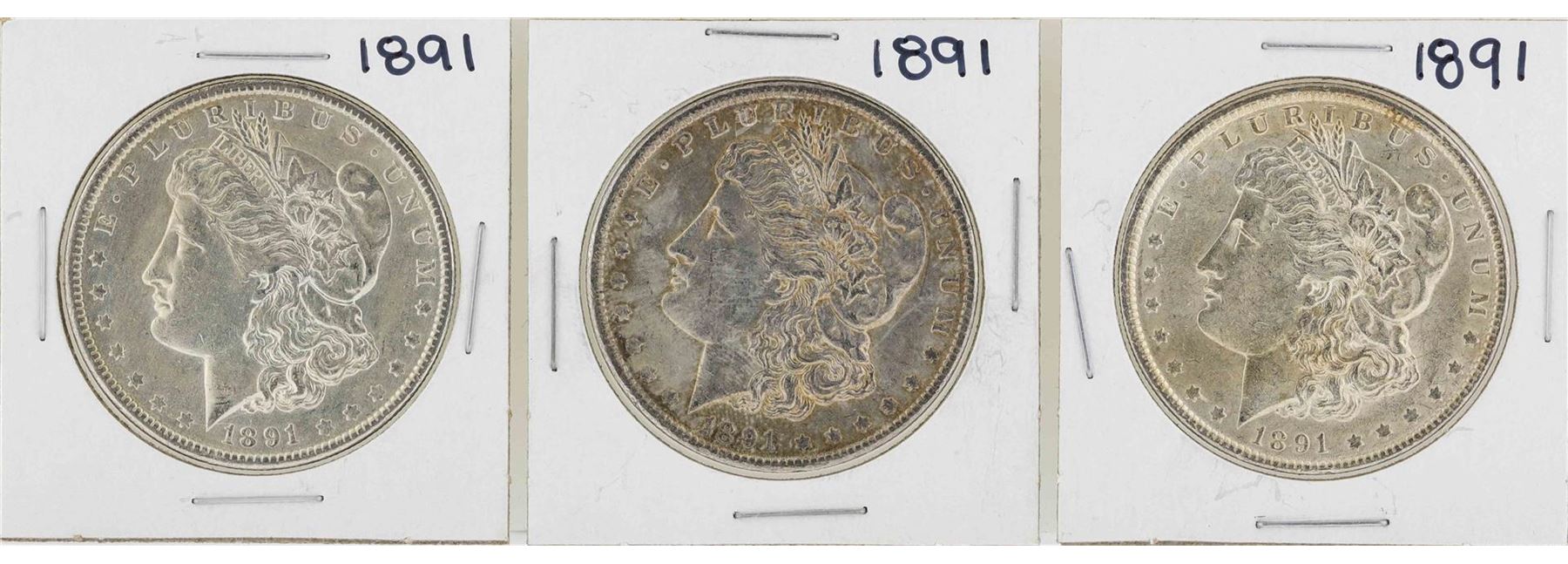 One Lot of (3) 1891 $1 Morgan Silver Dollar Coins.