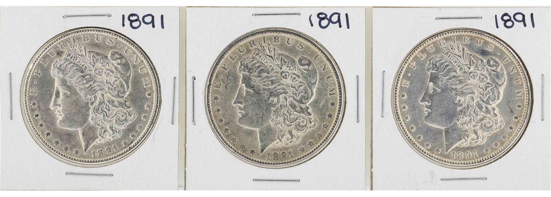 One Lot of (3) 1891 $1 Morgan Silver Dollar Coins.