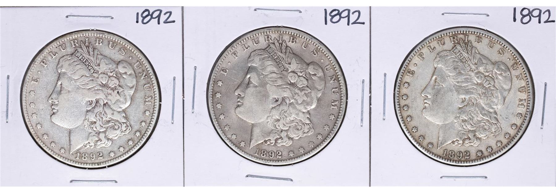 One Lot of (3) 1892 $1 Morgan Silver Dollar Coins.