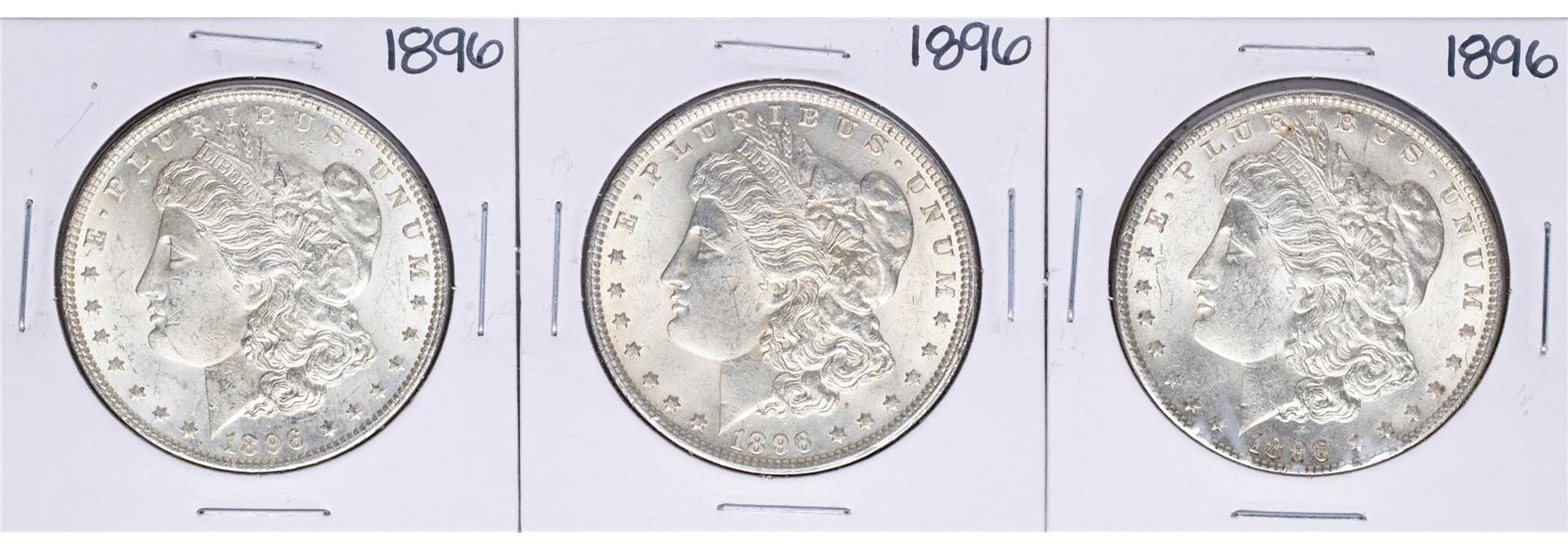 One Lot of (3) 1896 $1 Morgan Silver Dollar Coins.