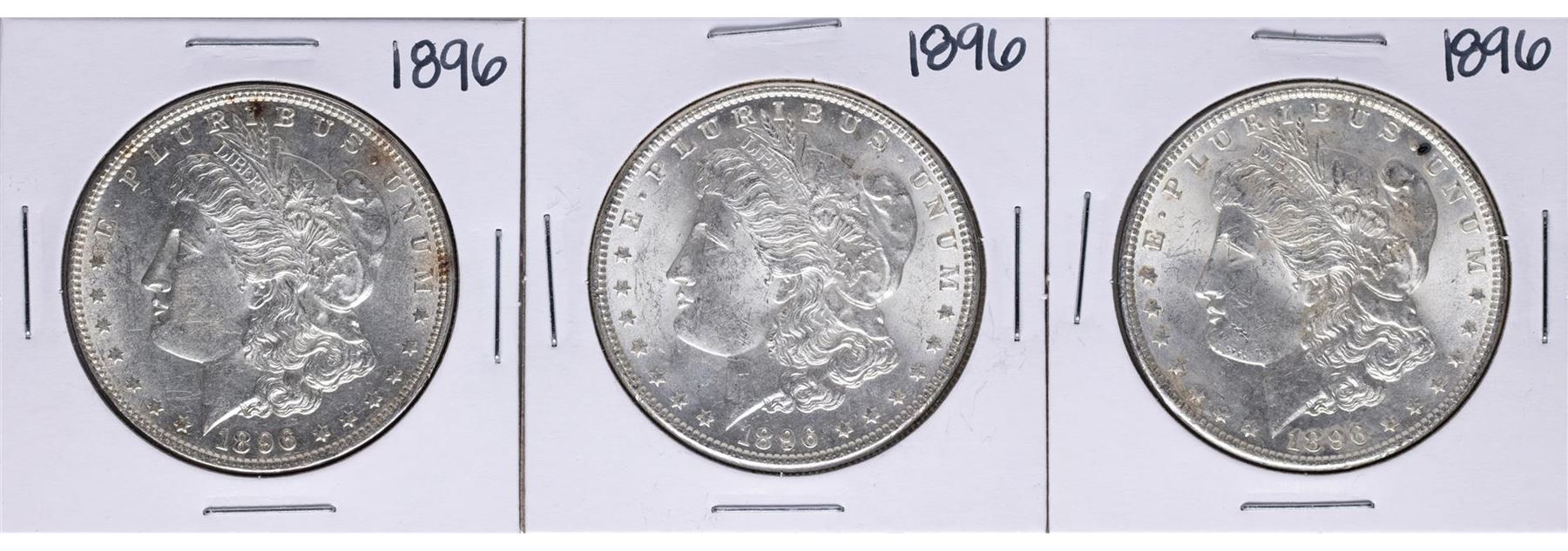 One Lot of (3) 1896 $1 Morgan Silver Dollar Coins.