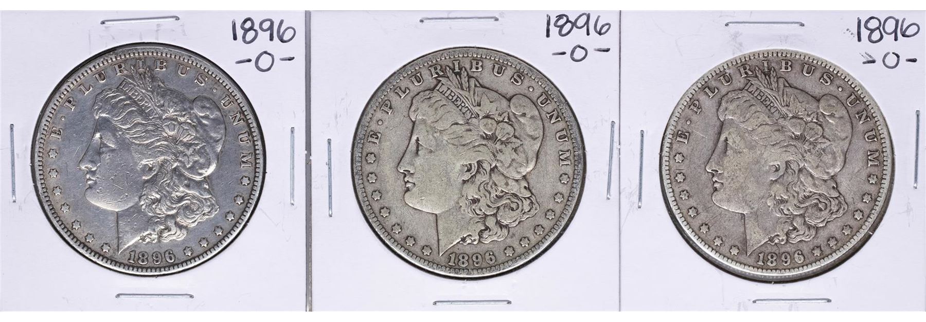 One Lot of (3) 1896-O $1 Morgan Silver Dollar Coins.