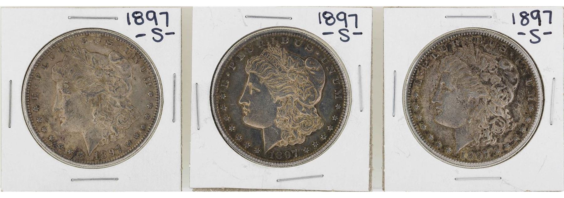 One Lot of (3) 1897-S $1 Morgan Silver Dollar Coins.