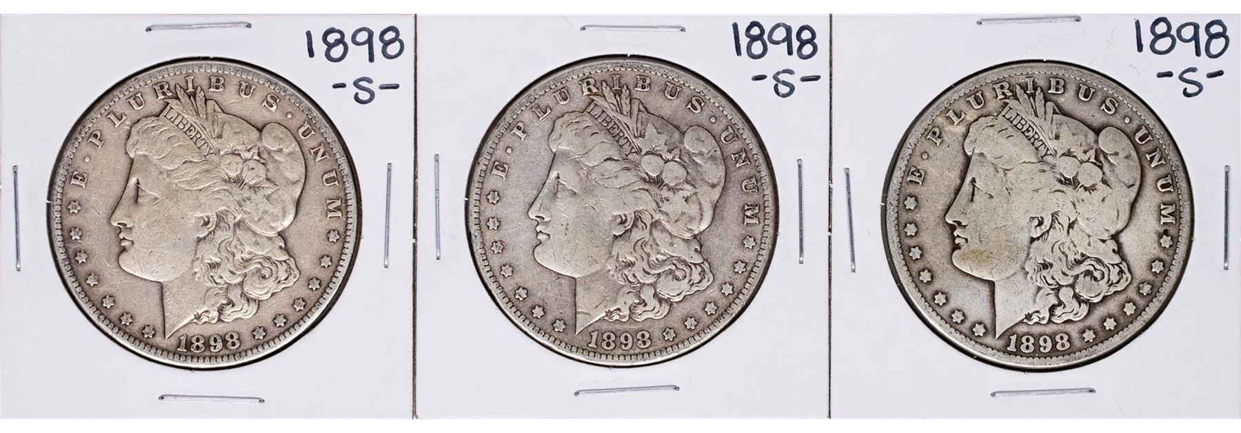 One Lot of (3) 1898-S $1 Morgan Silver Dollar Coins.