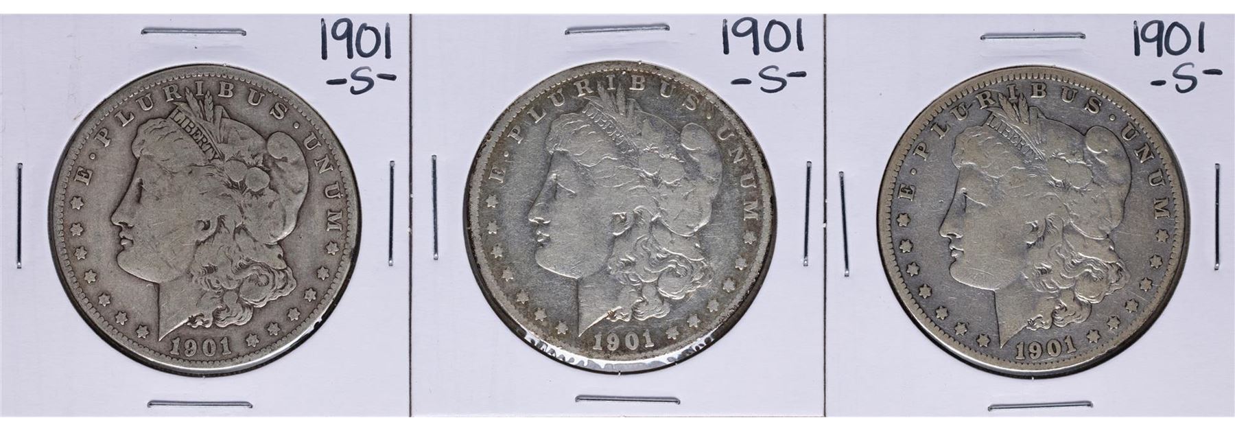 One Lot of (3) 1901-S $1 Morgan Silver Dollar Coins.