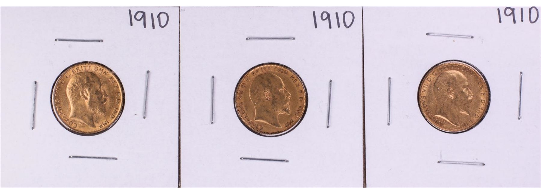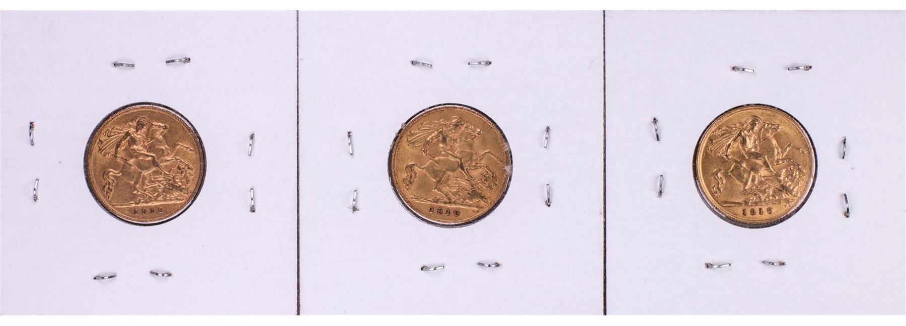 One Lot of (3) 1910 Great Britain Half Sovereign Gold Coins.