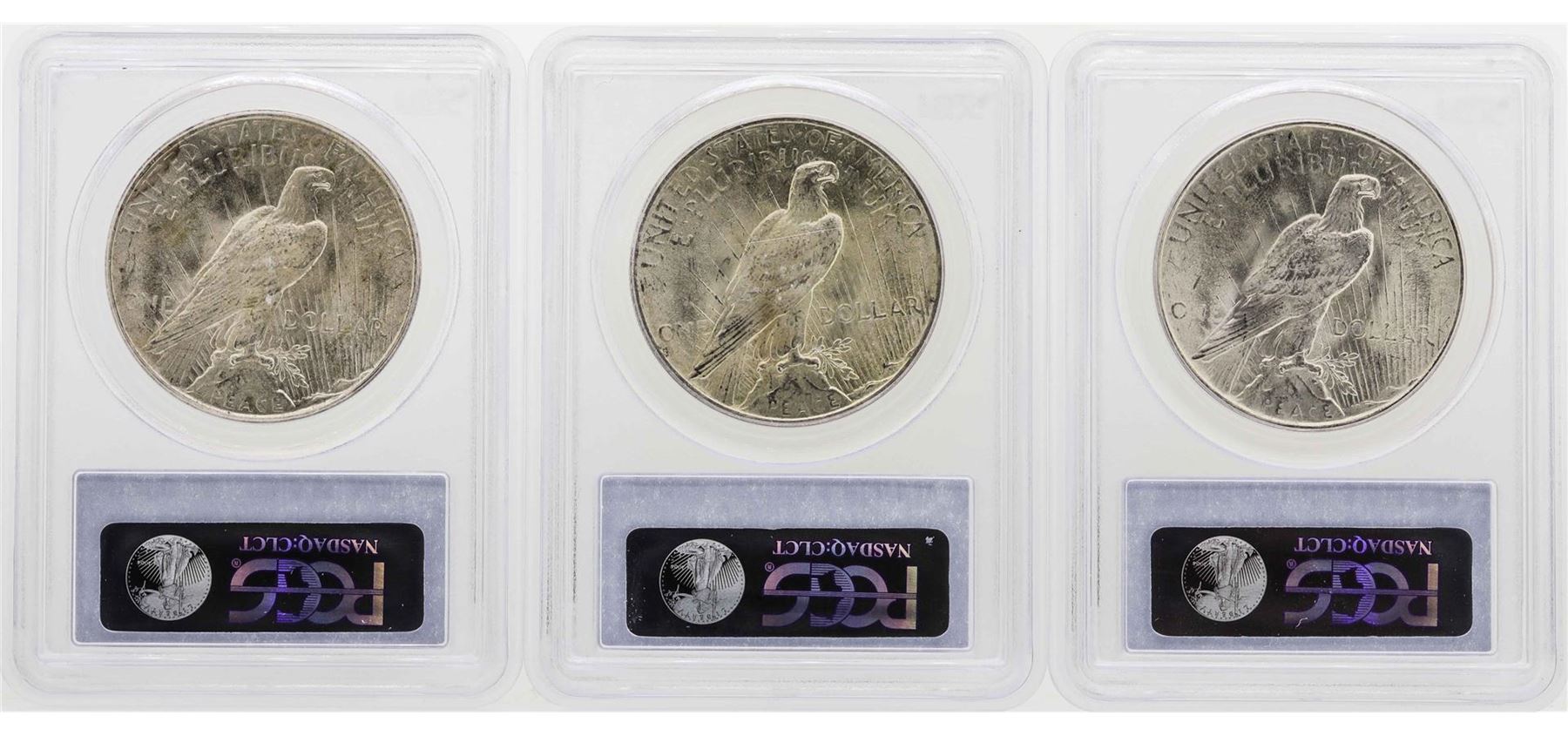 One Lot of (3) 1923 $1 Peace Silver Dollar Coins PCGS MS63. PCGS Graded.