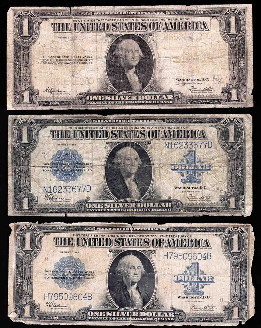 One Lot of (3) 1923 $1 Silver Certificate Notes.