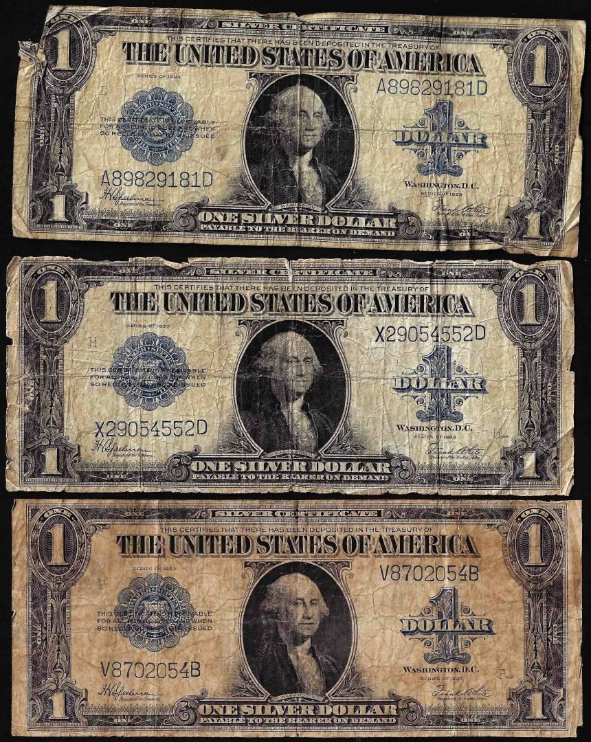One Lot of (3) 1923 $1 Silver Certificate Notes.