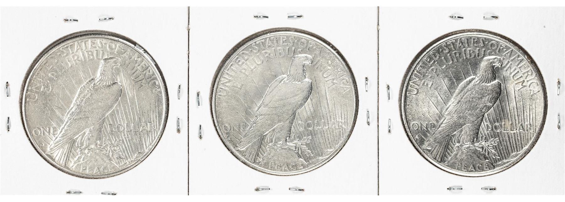 One Lot of (3) 1927-S $1 Peace Silver Dollar Coins.
