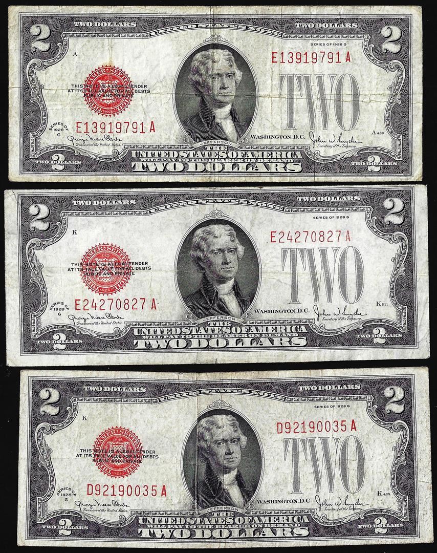 One Lot of (3) 1928G $2 Legal Tender Notes.