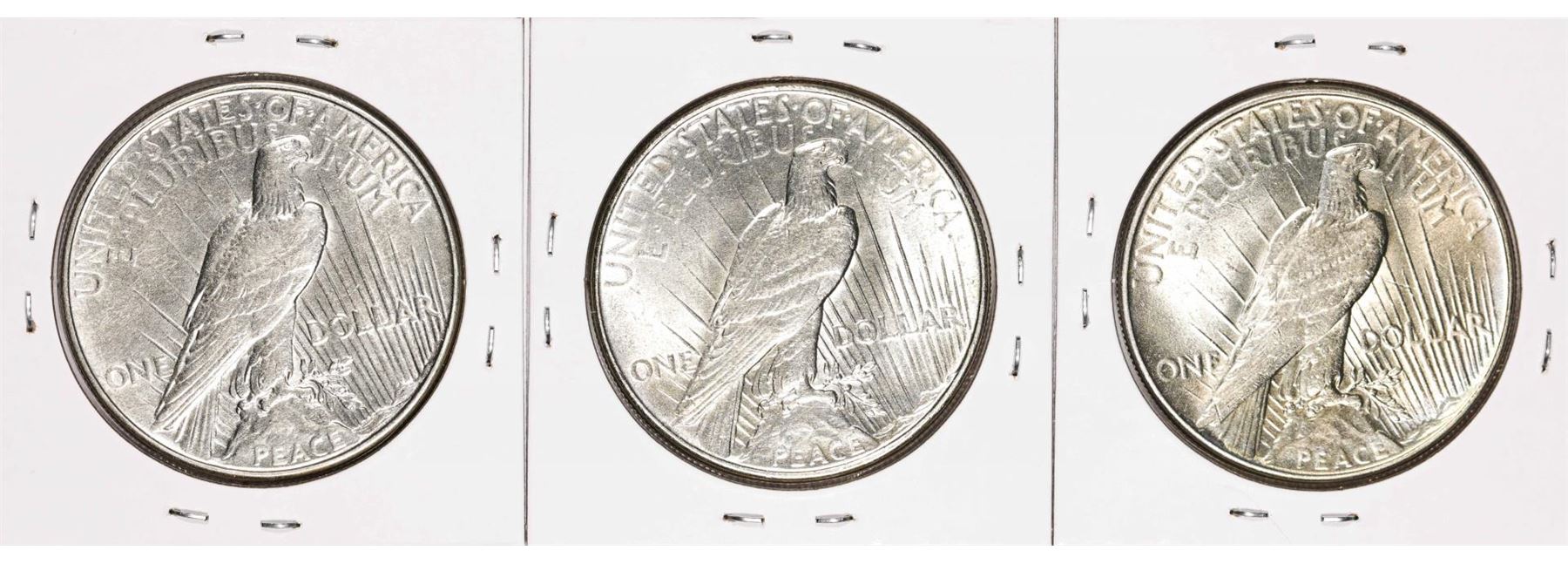 One Lot of (3) 1934 $1 Peace Silver Dollar Coins.